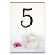 These pretty Teapot and Pink Roses Wedding Table Numbers add an elegant flair to the tables at your high tea theme engagement party, bridal shower or marriage reception dinner. These classy custom garden tea party wedding table number cards feature a floral photograph of a flowery tea pot and pink rose flowers with white satin.
