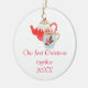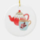 This double sided ceramic ornament features a cheery teapot and mug and the phrase "Our first Christmas together 20XXX". The date is customisable. The reverse side of the ornament has the teapot and mug without the text.