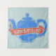 Invicta illustration of a teapot, drawn in the colours of the Union Jack flag. A design for anyone who loves to drink tea. The teapot has a ribbon on it with the text collecting teapots is a sport.
