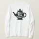 A nice bold teapot design with the ever popular humourous English catch phrase of film and comedy "More Tea Vicar?" written on it following the curvature of the teapot giving this design a nice 3d effect. Just the thing to wear when the Pope comes round for tea.
