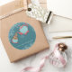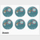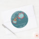 Teapot pouring snowflakes from the kitchen of classic round sticker