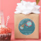 Cute to/from Christmas sticker or "from the kitchen of" gift label for tea lovers or gifting your list with homemade tea blends. Teapot pours snowflakes tea into a teacup with snowflakes background.