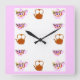 Teapot, Teacup, And Copper Teakettle Square Wall Clock, by Kristie Hubler, with a fruits and leaves pattern on the teapots and teacups