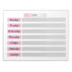 This is a perfect planner for busy families... easy to use and well organized. Each page rips off after use and the new page is ready for the next week. Clear print and personal monogram is fun.