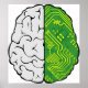 Elevate your home office or tech space with this striking artificial intelligence wall art. This high quality poster features a modern graphic comparing human neuroscience with digital hardware through a unique neural network design. The clean lines and vibrant green circuit board details make it an ideal choice for software engineers, psychologists, and science students. Perfect for framing, this illustration adds a professional and intellectual touch to any study, classroom, or creative studio.