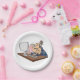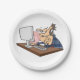 A tech support worker at a desk blowing a bubble. This design looks really effective on these Paper Plates