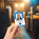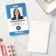 This employee identification badge has a computer technology graphic in the background. It can be personalised with a company logo, an employee photo, name, title, employee ID number, or valid through date, and department or company name. The back can be customised with a barcode if needed, along with return address or other details.