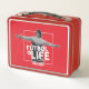 This is a standard metal lunchbox that appears to work just fine. We designed this box ourselves with an uploaded photo and custom text on the front and back. It looks absolutely beautiful except the front of the lunchbox is not centered like it shows in the photo. The print borders don't align with the inset flat part of the box where the preview photo online showed it perfectly centered in there. The back looks nice and centered though.