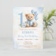 Teddy Bear 1st Birthday Blue Balloons Invitation