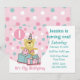 Our TEDDY BEAR BIRTHDAY 1st birthday invitations are perfect for any little birthday girl that loves teddy bears and presents! Featuring an adorable teddy bear with a striped party hat, polka dots, birthday presents and a balloon with the number ONE. Text says IT'S MY BIRTHDAY. Customisable text. Also on coordinated postage, T-shirts and gifts! PinkInkArt original!