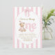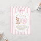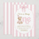 This invitation tells a story of childhood innocence and warmth. Featuring a hand-painted, watercolor-style teddy bear in cozy polka-dot pajamas, it evokes a sense of nostalgic charm. The soft pink vertical stripes and the delicate scalloped frame create a timeless, "shabby chic" aesthetic that is perfect for a classic girl's birthday celebration.