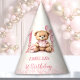 1st and any Birthday paper party hats with a cute teddy bear, balloons, and number in soft shades of pink and beige. Cute design for first or any Birthday of a little girl. Easily personalise the text. - Kate Eden Art