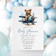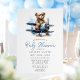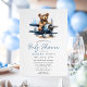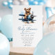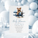 Get ready to celebrate with this adorable teddy bear aeroplane baby shower invitation. Featuring a watercolor teddy bear dressed as a little aviator on a vintage blue aeroplane, this invitation is perfect for a boy's baby shower with an adventurous theme. The soft colours and charming design make it a lovely choice for parents expecting a little boy who is ready to soar.