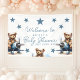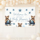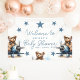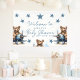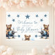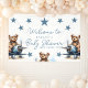 The 'Teddy Bear Aeroplane Baby Shower Welcome Banner' is a charming way to greet guests as they arrive to celebrate the anticipated arrival of a new baby. This banner features adorable teddy bears in vintage aeroplanes, flanked by soft blue stars, creating a whimsical and inviting entry to the baby shower. It’s a wonderful way to set the scene for a memorable event and make everyone feel warmly welcomed.
