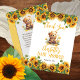 The centerpiece of the design is a loveable teddy bear, rendered in delicate watercolors that give it a soft, whimsical feel. Sitting amongst a field of sunny yellow sunflowers, the bear is surrounded by top and bottom boughs of sunflowers, creating a lovely and eye-catching frame for your event details.