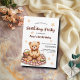 A charming design with a teddy bear at picnic and elegant calligraphy! You can personalise this invitation with your own details.