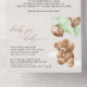 Invite friends and family in style and set the tone for your special day with this charming baby shower invitation. Design features teddy bear with green balloons on beige background.