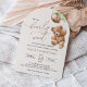 Invite friends and family in style and set the tone for your special day with this charming baby shower invitation. Design features teddy bear with green balloons on beige background.