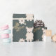 Cute simple brown girl teddy bear in a dress surrounded by a simple flower repeat pattern gift wrap.Green background. Perfect for all your baby shower gifts. The perfect baby girl shower wrapping paper. Simple & sweet.