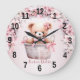 Teddy Bear Baby Girl Pink Flowers Elegant Chick Large Clock