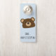 Alert people to the need for quiet when baby is sleeping with this adorable teddy bear door hanger. One side is light blue, one side is light pink - both with cute teddy bear face and the words, "Shhh....Baby is sleeping!"