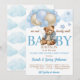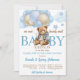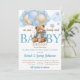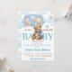 Teddy bear baby shower bearly wait cute teddy bear with balloons Invitation template instant download, teddy in a jacket and pants with bunch of balloons and clouds blue and brown muted colours.