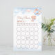 A sweet baby shower bingo game card featuring an adorable teddy bear holding soft blue and blush balloons with dreamy cloud and star accents. The gentle watercolor design adds a charming touch to your party activities while coordinating beautifully with matching teddy bear shower decor. Perfect for a boy baby shower, pastel celebration, or bear-themed party game table.