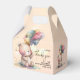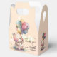 A cute, cuddly teddy bear, a bunch of balloons, butterflies, fluffy clouds and your details are featured on this fun gable style baby shower favour box. MATCHING items in our collection.