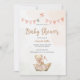 Invite loved ones to celebrate your little girl with this adorable pink teddy bear baby shower invitation. Featuring a soft watercolor bear in a floral-decorated boat, this design is ideal for a sweet, feminine baby shower.
