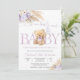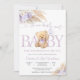 Celebrate the upcoming arrival of your little one with this adorable teddy bear baby shower invitation. Featuring soft pastel colors, floral accents, and a sweet bear holding a balloon, this elegant design sets the perfect tone for a joyful gathering. The mix of cursive and serif fonts adds charm and warmth, making it ideal for honoring parents-to-be. Perfect for baby girl showers, this customizable invitation ensures your event feels personal, stylish, and memorable.