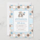 This cute boy baby shower invitation features a sweet teddy bear holding balloons with a polka dot background in blue, beige and brown. The backside design is blue and white stripes which match the front. All text is editable so you can personalise this design for your own unique needs.