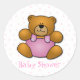 Cute envelope stickers with cartoon artwork of a teddy bear in pink overalls. A pink and white polka dot background and pink text reading, Baby Shower gives it a sweet matching finishing touch to any baby shower invitation or baby announcement. Personalise the text to suit your needs.