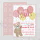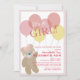 Teddy Bear Balloon Pink Girl Drive-by Baby Shower Invitation