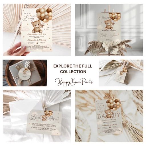 Teddy Bear Themed neutral brown ivory baby shower invite. Matching items available, kindly message via zazzle.