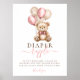 Teddy bear with balloons pink girl baby shower diaper raffle poster.