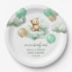 Teddy Bear Balloons Green Gold Sky Baby Shower Paper Plate