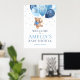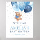 Watercolor Teddy Bear Blue and Silver Gold Balloons Welcome Baby Shower Sign.
