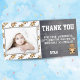 Cute birthday thank you card to thank your guests. The card has a cute teddy bear pattern and a little teddy bear. Personalise the card with your photo and name. You can also change the thank you text and write your own. The text is in trendy and modern white colour. The background is a modern grey chalkboard texture. Teddy bear theme.