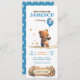 Celebrate your little one's first birthday with this adorable teddy bear themed invitation! This Beary First Birthday Invitation is the perfect way to make it a celebration to remember. Featuring a sweet brown bear holding a bright blue balloon emblazoned with your baby boy's age, this invitation will capture the joy and excitement of your child's very first birthday.