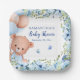 Teddy Bear Blue Balloons Bearly Wait Baby Shower Paper Plate