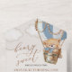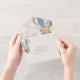 Invite friends and family in style and set the tone for your special day with this charming birthday invitation. Design features teddy bear in blue hot air balloon on beige background.