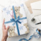 Teddy Bear Blue Stars Watercolor Baby Shower Wrapping Paper
