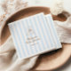 “We can bearly wait” Celebrate the mum-to-be with these cute hand drawn baby shower napkins featuring a line art drawing of a teddy bear and a soft blue vertical striped background.