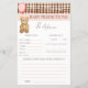 Add a sweet and memorable activity to your celebration with the We Can Bearly Wait Baby Predictions and Advice Baby Shower Game by Porch and Gable Design. Featuring a charming watercolor teddy bear holding a pink balloon, soft blush pink accents, and a brown gingham plaid background, this cute game card is as stylish as it is meaningful. Guests can fill in their predictions for the baby’s date of birth, time, gender, weight, and more, while also leaving heartfelt advice and encouragement for the parents-to-be.