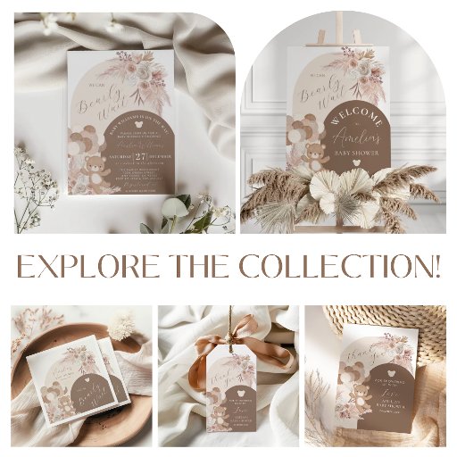 Boho Beige Gender Neutral Teddy Bear Baby ShowerDesigned by Anna ArtDesign