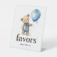 Add a charming touch to your boy baby shower with this adorable favour pedestal sign! Featuring a sweet watercolor illustration of a cute teddy bear with a blue balloon, this elegant yet playful design creates a coordinated and memorable look for your favour table. Place it near your party favours to guide guests and add an extra decorative element to your event. Order yours today to make your baby shower even more special!