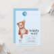 A baby shower "we can bearly wait" invitation featuring a teddy bear and blue balloon for a baby boy. Matching items available in the Teddy Bear Baby Shower Theme collection.