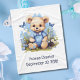 An adorably cute teddy bear with a blue outfit on this baby blanket. Personalise with babies name and birthday. Three sizes, small 30x40 inches, Medium 50x60 inches and large 60x80 inches. Makes a great baby shower or new baby gift.