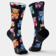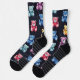 Teddy Bear Chalk Drawing Pattern Black Socks