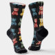 Teddy Bear Chalk Drawing Pattern Black Socks